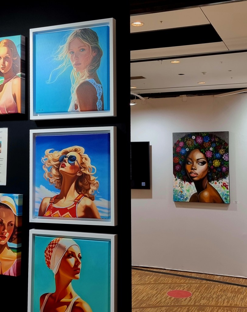 Da ich ein Sponsoring der Kunstagentur Artboxy gewonnen hatte, durfte ich, zusammen mit 8 weiteren Künstlerinnen und Künstlern, eines meiner Werke (das Bild „FlowHair“) in Paris, während der Exhibition Art Shopping 2025 im Carrousel du Louvre, ausstellen.